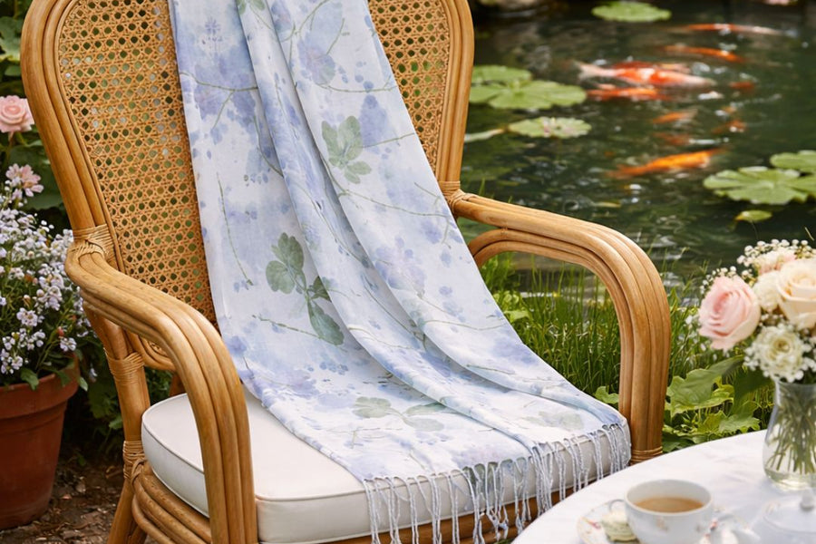 This eco print shawl is crafted from soft, breathable natural Amarapura cotton and features unique botanical prints created using real leaves and flowers gathered from the surrounding area. Each piece is individually eco printed, allowing the natural pigments and shapes...